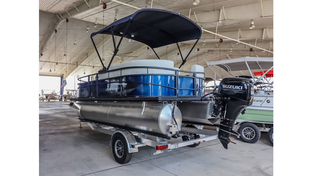 This boat and RV combination allows customers to prepare for outdoor activities that include both land travel and boating.